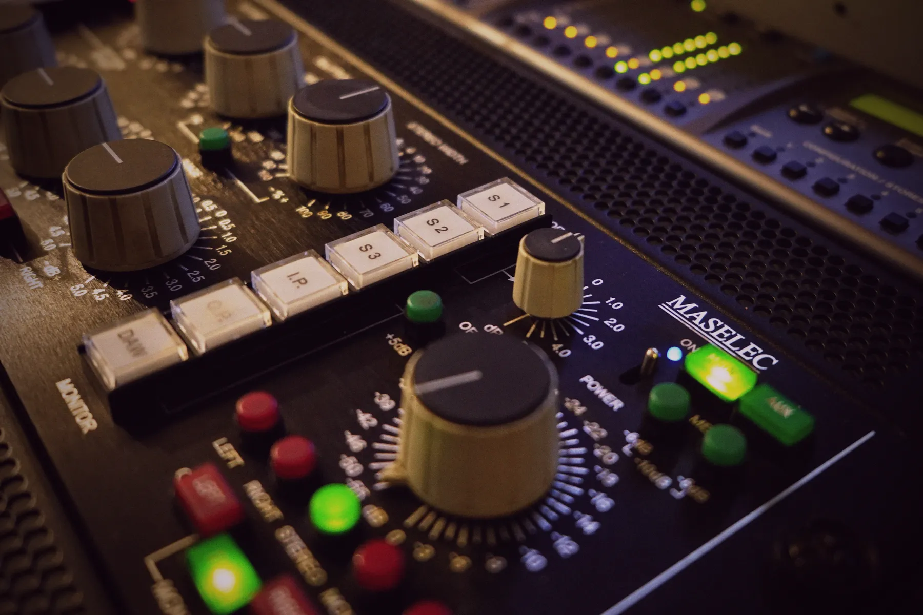Chaque projet est traité avec une chaîne hybride d’équipements analogiques rares : compresseur Fairman TMC, EQ GML 9500, Manley Massive Passive, console Maselec MTC‑1X, etc.